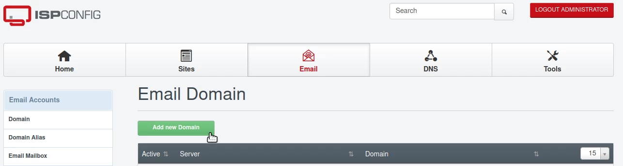 Agregar dominios al servidor de correo en el panel de control ISPConfig.