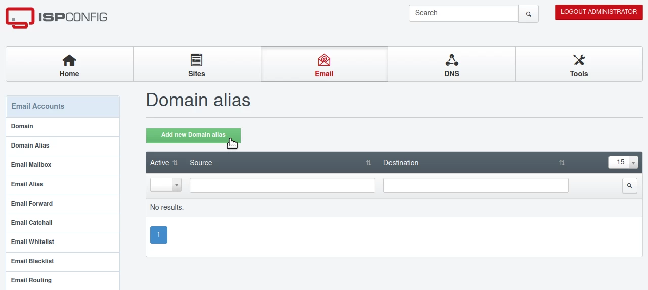 - Esta función del panel ISPConfig permite redirigir todos los correos electrónicos destinados a un dominio a otro dominio.
