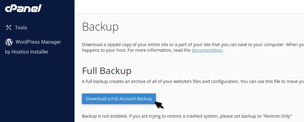 Creando una copia de seguridad completa en cPanel