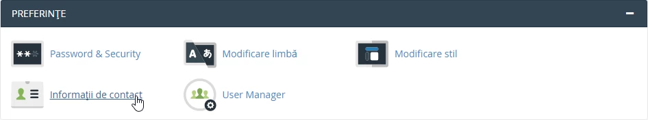 - Para activar las notificaciones en la cuenta de cPanel y cambiar la información de contacto, iniciaremos sesión en la cuenta de cPanel e iremos a la sección Preferencias y haremos clic en Información de contacto.