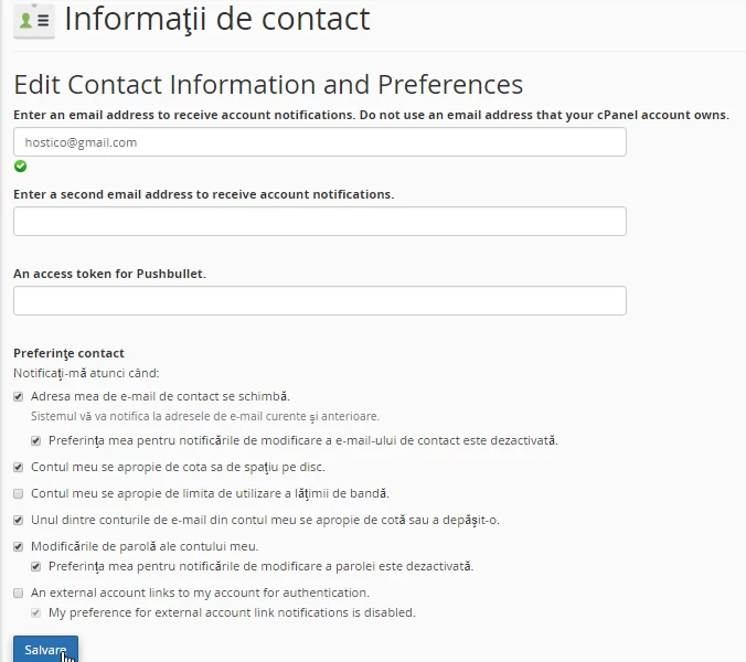 En este tutorial, mostraremos cómo habilitar las notificaciones para la cuenta de cPanel y cómo modificar la información de contacto.