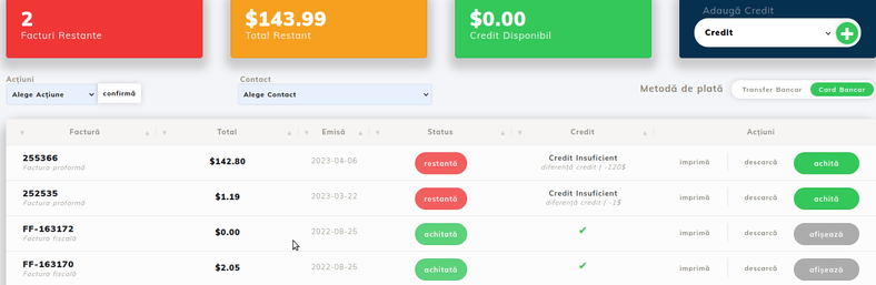 2. Tarjeta de Crédito - Con este método de pago, el pagador no puede ser identificado directamente, y la factura se emitirá directamente basada en los datos encontrados en la proforma. - La modificación de las proformas se puede realizar varias veces; si el subcontrato se completó incorrectamente al principio, se puede revisar y solicitar nuevamente el procedimiento;