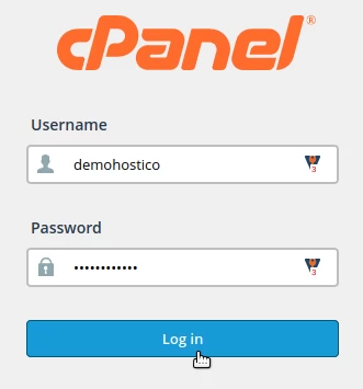 - Accederemos al cPanel a través del enlace proporcionado en el correo electrónico de administración para el hosting, utilizando el nombre de usuario y la contraseña del mismo correo.